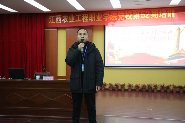 1月8日下午,在多功能报告厅,学院党委委员、副院长许振华以《学习党的十九届五中全会精神 助力我省实现农业农村现代化》为题,为学生入党积极分子进行了党的十九届五中全会精神宣讲。