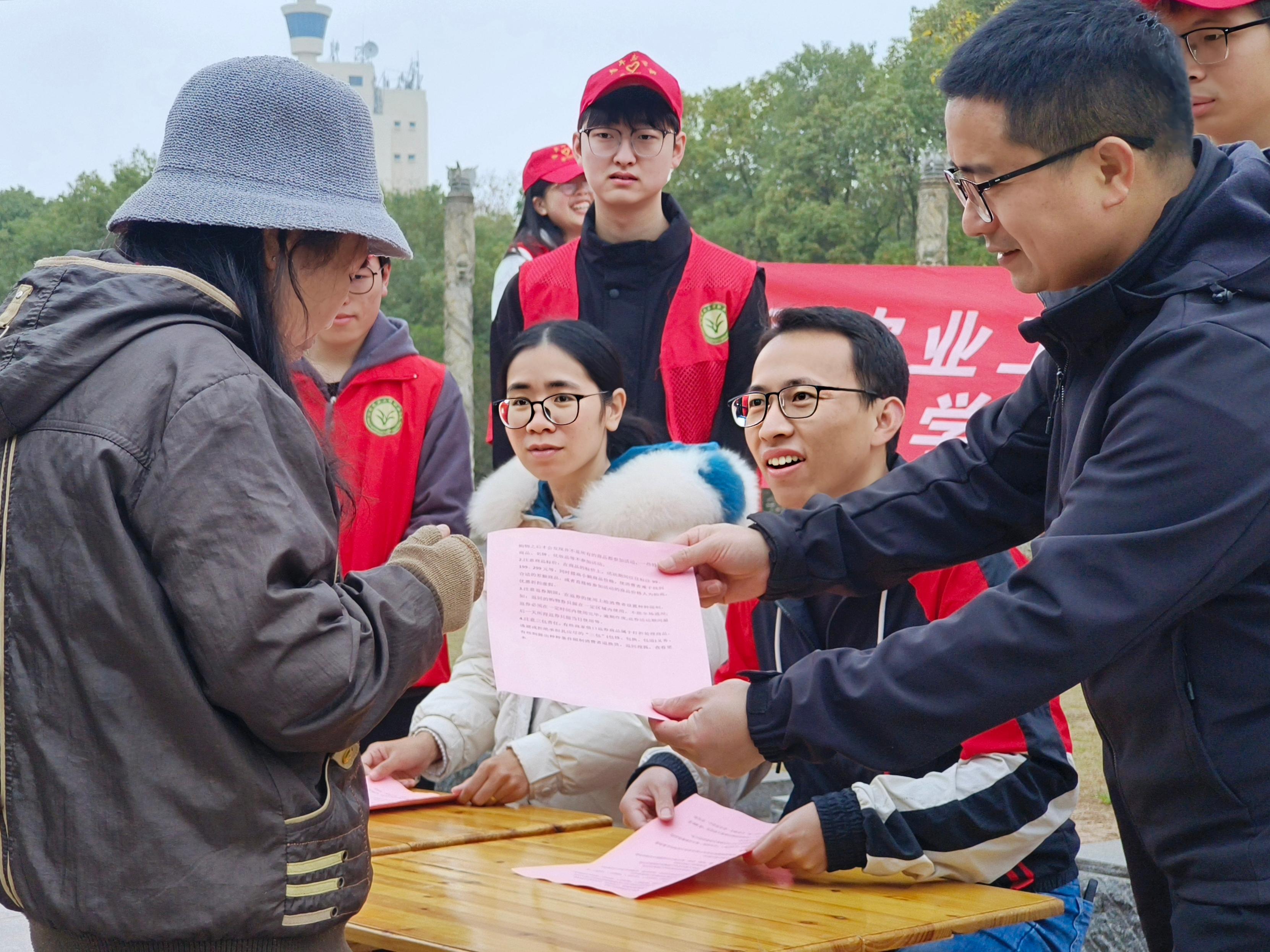 践行雷锋精神,情暖社区服务。志愿者在抵达楼门前社区党群服务中心后,在社区工作人员的配合下,领取桌凳,前往药都公园。刚刚抵达公园,就有带着自家宠物问题的居民早早等在那里。志愿者师生立马分为两组,学生们为一组,负责派发传单,而老师们为二组,为居民们解答相关宠物问题与科普相关养护知识。在整个活动过程中,志愿者们团结协作、热情高涨,充分践行了新时代雷锋精神,获得居民们的一致好评。