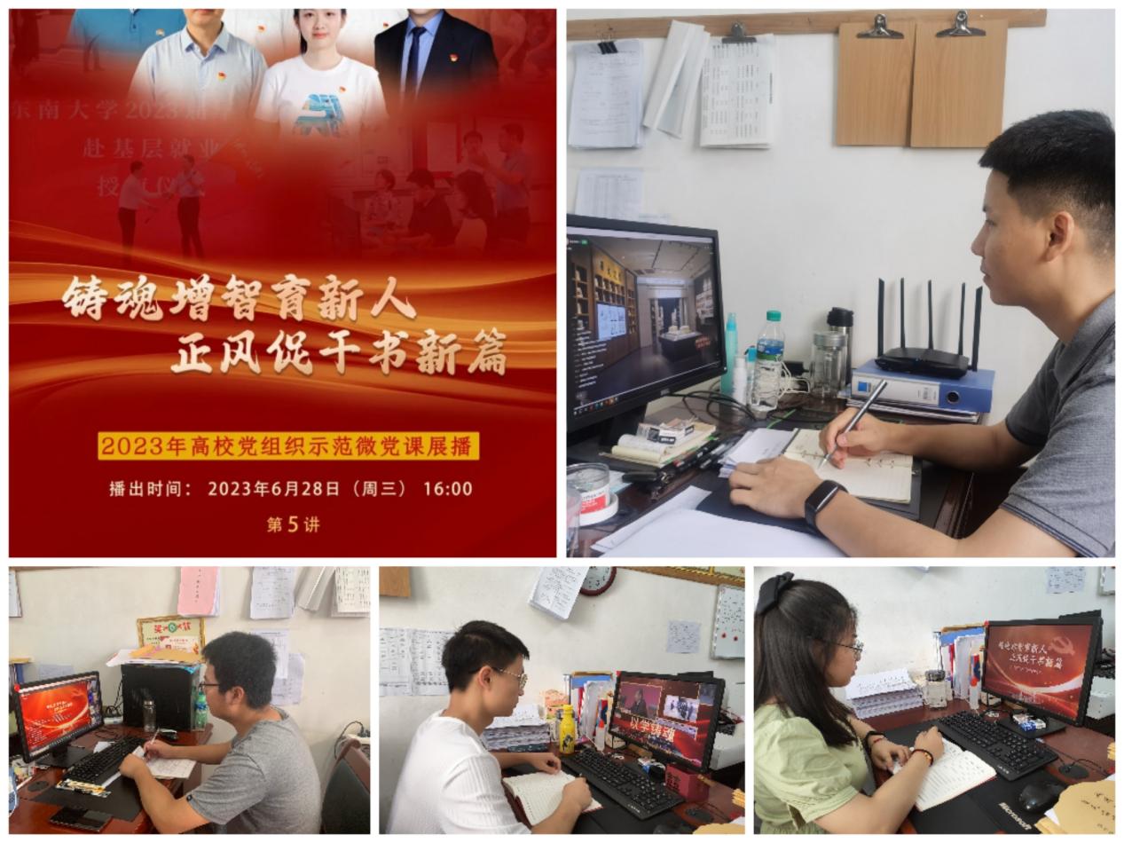 为进一步深入贯彻落实主题教育关于加强理论学习的要求,6月28日,动物科学学院党支部组织全体党员、入党积极分子和部分师生,线上观看了教育部主办的2023年高校党组织示范微党课展播第五讲。本次微党课由天津大学、东南大学、中国科学技术大学、北京交通大学、华中师范大学五所高校主讲,展现了各高校在思想政治工作领域的创新实践和丰硕成果。微党课紧紧围绕学习贯彻习近平新时代中国特色社会主义思想主题教育展开,主张用“大思政课”教育引导更多青年教师把学习成果转化为实际行动和工作成效,立足本职,为加快推进教育现代化、建设教育强国、办好人民满意的教育贡献自己的力量。