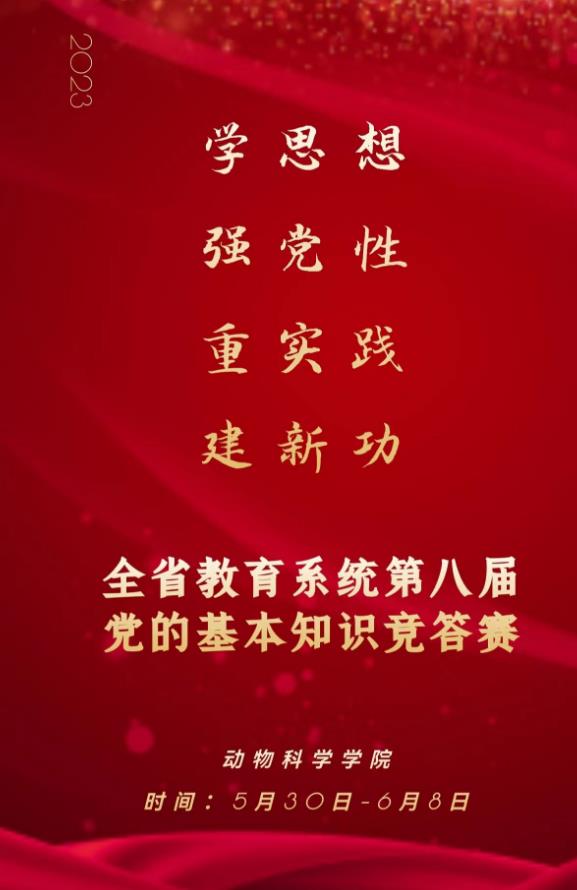 为深入学习贯彻习近平新时代中国特色社会主义思想,增强党性修养,提高理论水平,展示新时代职业教育人的精神风貌,动物科学学院组织全体师生积极参加了由省委教育工委主办的全省教育系统“学思想、强党性、重实践、建新功”第八届党的基本知识竞答赛。