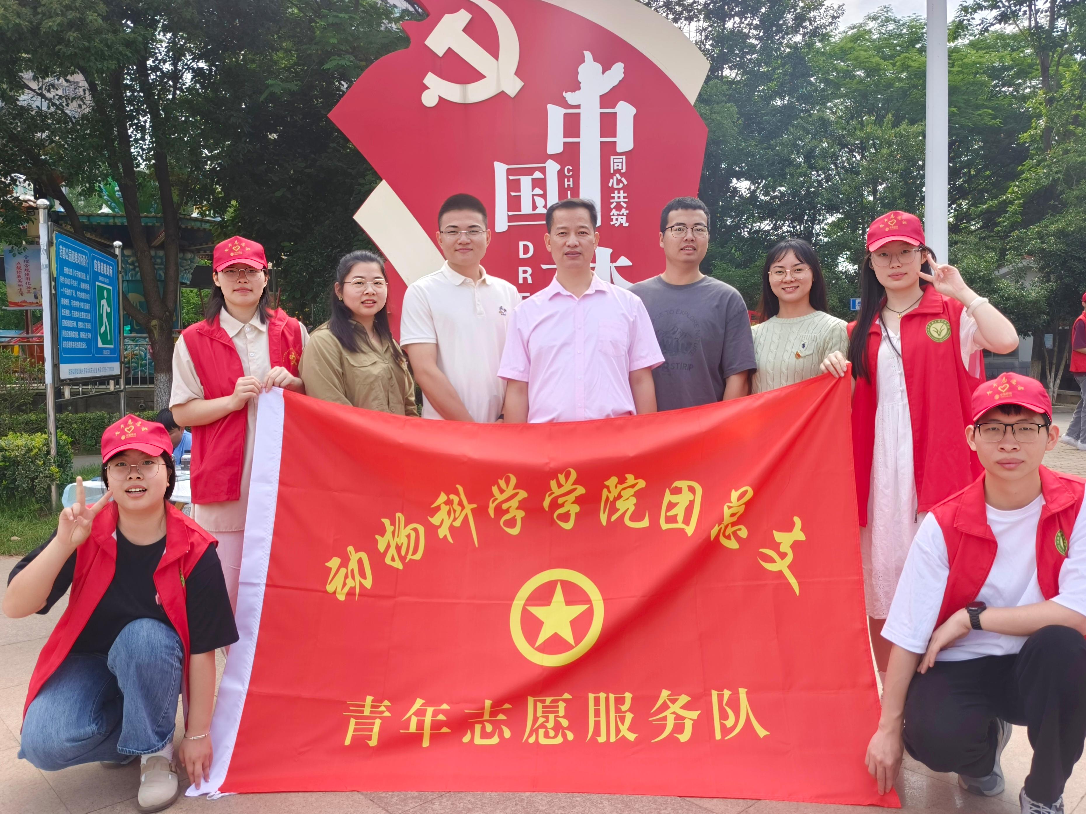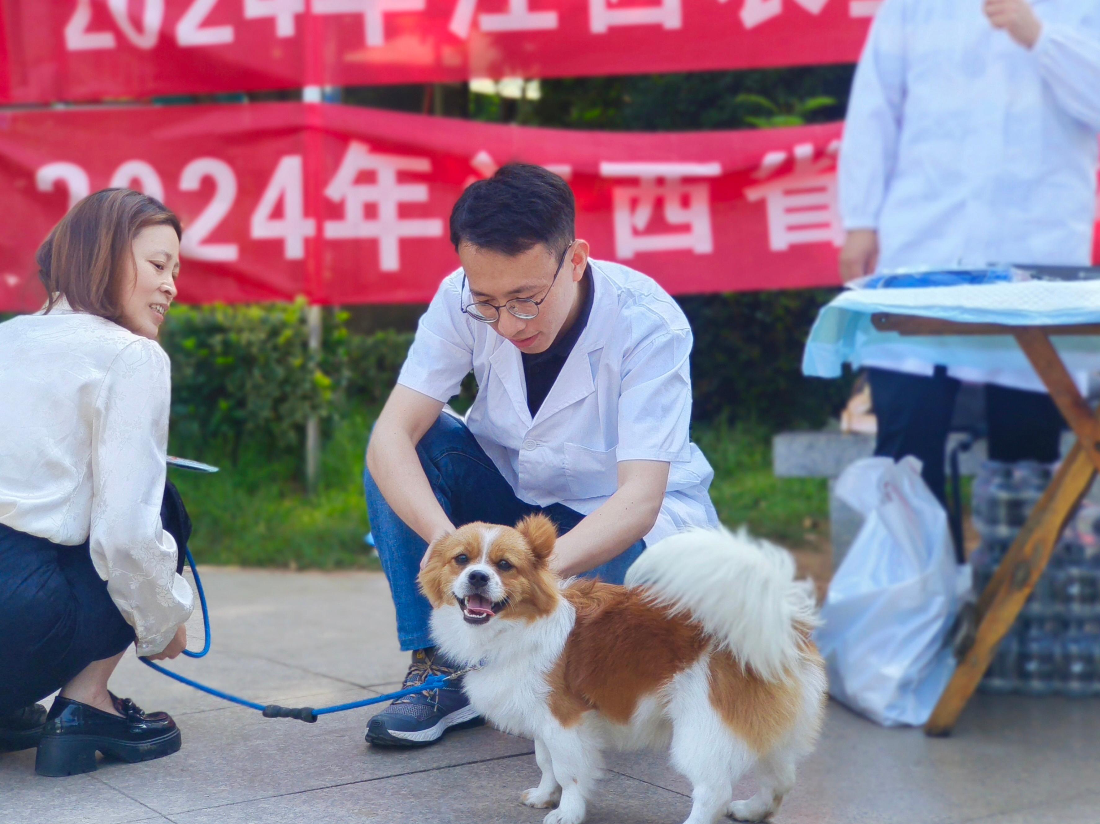 “爱宠”青年志愿服务队由动物科学学院党支部和团总支志愿者组成,专业老师们对前来就诊宠物的皮肤、骨关节等做了全方位的检查、并为相关患病宠物提供了专业的治疗建议。志愿者们结合自制宣传图册为来往居民介绍基础养宠知识,夏季常见传染病,并为居民免费发放宠物相关用品40余份,科学养宠入门手册60余本,并为携带宠物而来的居民提供专业养宠咨询。