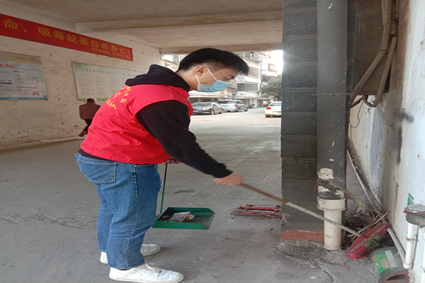 2021年1月29日,动物科学学院党支部预备党员曾庆玉、张文翔在江西省信丰县圣塔路街道社区开展“绿水青山”志愿服务活动。他们热情饱满,干劲十足,从路边的纸屑到墙角的杂草,他们都进行了认真仔细的清扫,额头上的汗水犹如一颗颗闪亮的珍珠,在劳动和奉献中闪耀着光芒。经过他们齐心协力的配合,社区街道的面貌变得焕然一新,社区的居民们纷纷为他们竖起了大拇指,称赞他们热心能干。