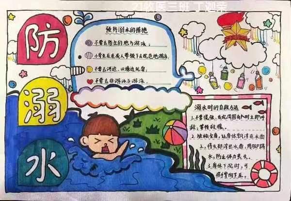 本次活动同学们云集响应,纷纷踊跃报名参与,通过各种渠道搜集预防溺水的相关资料并结合周边、网络实例,围绕主题精心设计编排,从防溺水安全知识、溺水自救方法、防溺水宣传教育等方面用手中的画笔绘出一幅幅图文并茂的手抄报。活动发起至今共征集作品15份,经过评选由21牧医三班丁迦荣同学的作品获得一等奖。