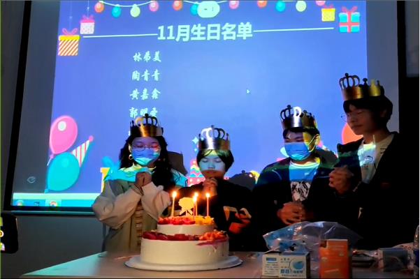 为贯彻落实好党史学习教育“学党史、 悟思想、办实事、开新局”的目标要求,动物科学学院着眼于新生到校如何尽快融入集体生活的现实需要,鼓励各班采取团建、文娱、户外拓展等形式拉近师生之间距离,使新生深切感受班集体的温暖,缓解异地念家之情。作为其中一种有益尝试,11月1日晚,21级牧医1班给5位11月份出生的同学举办了集体生日会。
