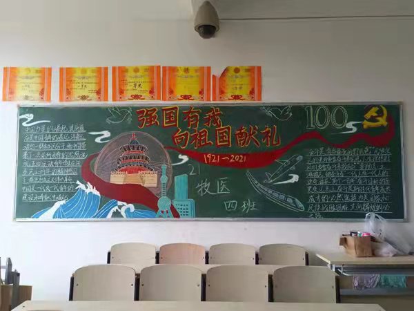 此次黑板报评比,各班级学生充分利用黑板报这一宣传地,紧紧围绕主题精心准备,充分发挥班集体团队协作精神。同学们用粉笔描绘祖国大好河山,用文字书写对祖国的美好祝福,用诗歌抒发“请党放心、强国有我”的誓言,用创意点燃浓浓的爱国之情。一幅幅图文并茂、色彩鲜明、内容充实、构思新颖的黑板报呈现在大家眼前,评委们秉持着公平公正的原则对各班黑板报进行评比打分,最终21牧医四班获得大专组一等奖,21五年牧医获得中职组一等奖。