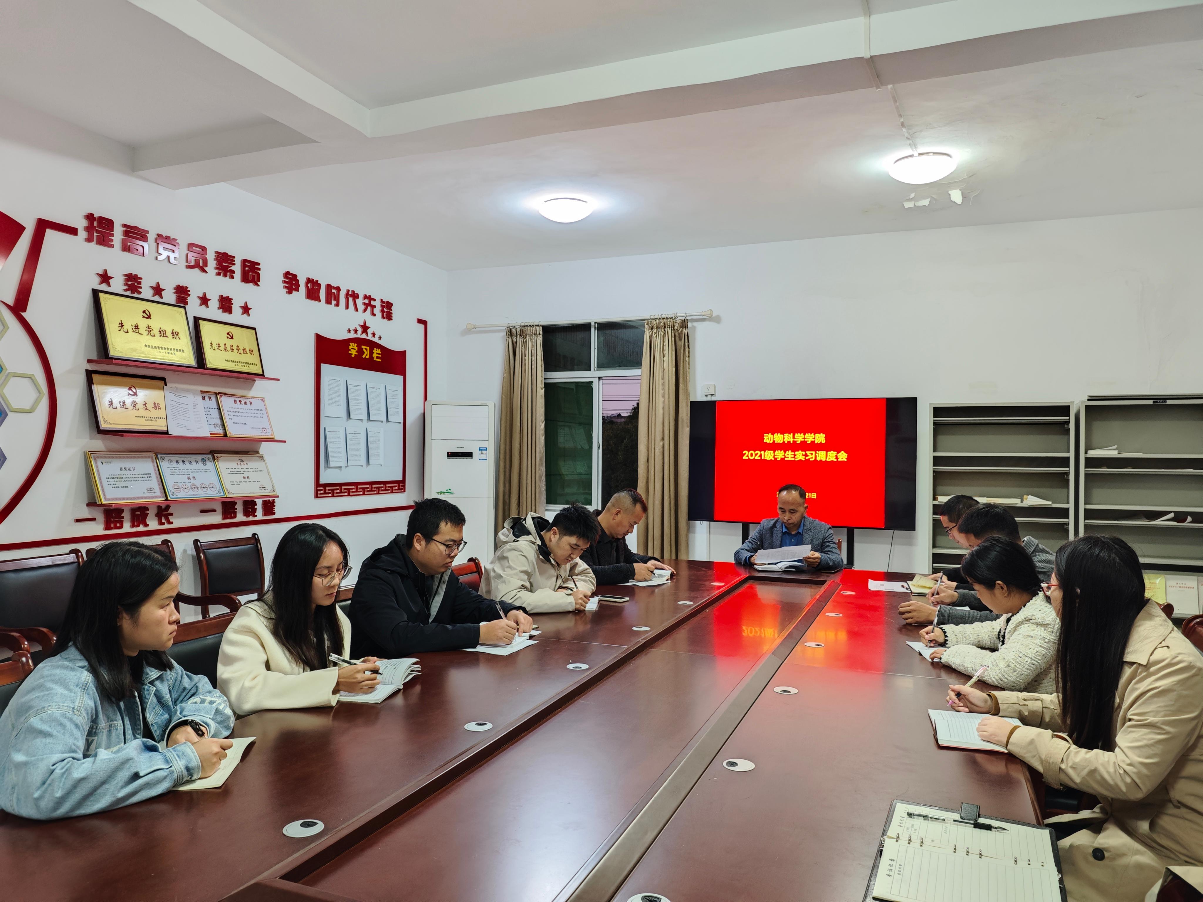 为进一步做好毕业生实习管理工作,推动教学实习走深走实,11月21日,动物科学学院在养生馆三楼党员活动室召开2021级学生实习调度会,学院副院长许振华、分院党政负责人和2021级大专班班主任参会。