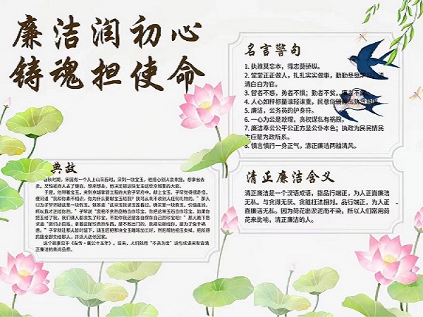 本次活动一经发出,同学们纷纷积极报名参与。通过“廉心文语”校园征文、“润心话语”情景剧视频和“清心妙语”创意设计三种形式,将廉洁教育与校园文化活动、师生社会实践等有机结合,以实际行动提炼廉洁文化的思想内涵、时代价值和教化功能,充分展现了同学们与时代共成长的情怀和担当。此次活动共收集10份作品,经过筛选22牧医一班张子涵的作品《清正廉洁树新风,牢记使命守初心》荣获本次活动一等奖。