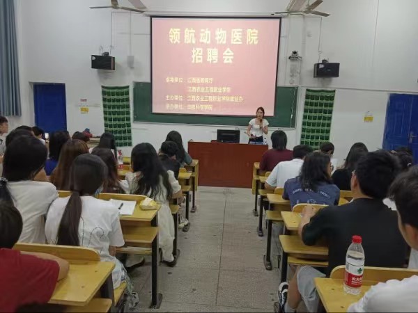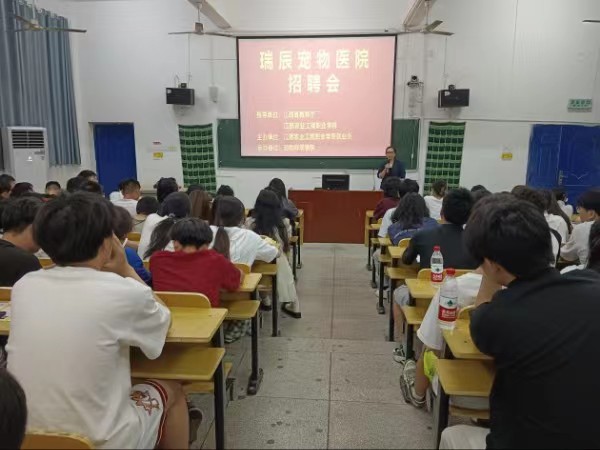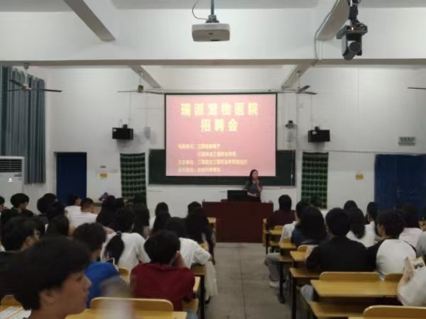 5月29日晚上,为促进学生更好就业,帮助学生寻找到适合自己的企业,动物科学学院主动谋划,积极发挥校企朋友圈作用,组织广州福懋畜牧兽医服务有限公司、上海瑞派津申宠物医院管理有限公司、瑞辰(上海)宠物服务连锁有限公司、江西帆顺连锁动物医院有限公司在我院第四多媒体召开了校园招聘宣讲会,企业相关招聘人员、动物科学学院相关人员和相关专业学生参加此次宣讲会。